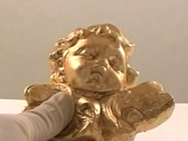 Нам потребуется:поталь, глянцевый лак, клей для золочения, горячий клей, эмаль, кисти.